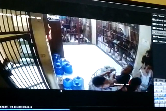 Tampak para tahanan yang mencoba kabur itu bergelut dengan seorang petugas jaga. Sementara puluhan tahanan lainnya masih berada dalam sel dan tidak berusaha kabur seperti yang dilakukan kelima tahanan ini.