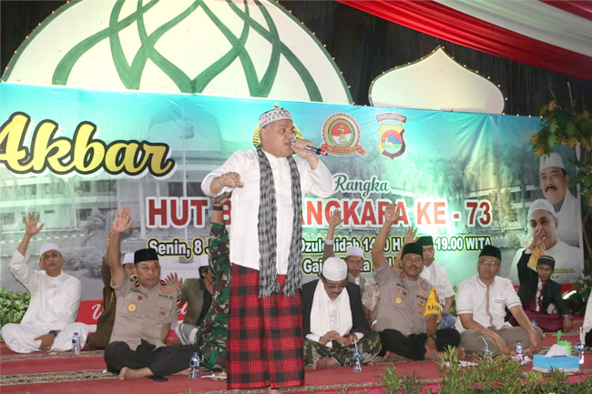 Mataram, gatra.net-Polda Nusa Tenggara Barat (NTB) bersama masyarakat NTB menggelar tabligh akbar dalam rangka memperingati Hari Bhayangkara ke 73, Senin ( 8/7) di Lapangan Gajah Mada, Mataram.