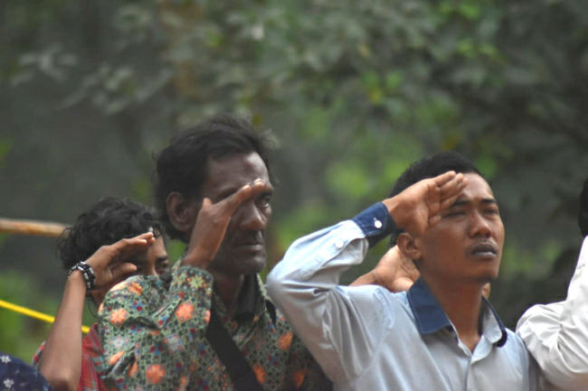 Upacara tersebut dipimpin langsung oleh salah seorang mahasiswa Universitas Budi Luhur, Jimmy dan diikuti oleh puluhan warga SAD serta puluhan mahasiswa yang tengah Kuliah Kerja Nyata (KKN) di sana.