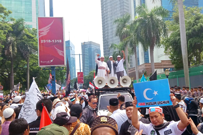 Jakarta, gatra.net - Aksi bela muslim Uighur yang digelar Ormas Islam se-Indonesia hari ini menyatakan tujuh tuntutan yang ditujukan kepada Kedutaan Besar Cina di Jakarta, Jumat (27/12).