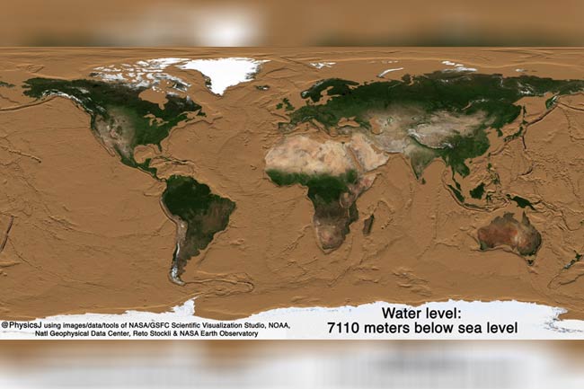 Jakarta, gatra.net -- Lautan menutupi sebagian besar Bumi, termasuk pegunungan terpanjang dan jembatan kuno yang dilintasi manusia untuk mencapai benua lain. Demikian sciencealert.com, 3/2. Dalam pembuatan ulang baru-baru ini dari video NASA 2008, ilmuwan planet James O'Donoghue menunjukkan seperti apa jika semua air itu terkuras, menyingkap tiga perlima dari permukaan bumi yang tersembunyi.
