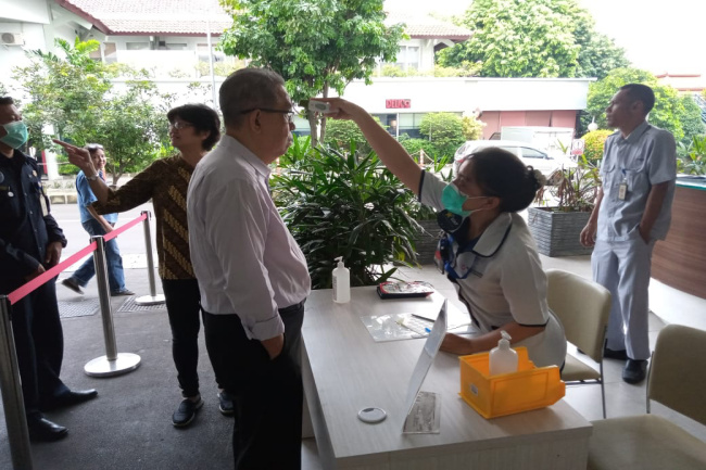 Akses masuk rumah sakit hanya melalui pintu masuk yang ditentukan dan Instalasi Gawat Darurat (IGD).