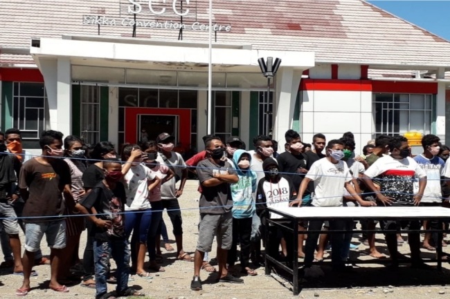 Sikka, gatra.net - Puluhan warga Kabupaten Sikka Provinsi Nusa Tenggara Timur (NTT) yang sedang menjalani masa karantina di Convertion Centre ( SCC) setempat, melakukan aksi protes minta segera dipulangkan ke kampung mereka masing –masing, Rabu (22/4). Di depan gedung SCC mereka semua membawa serta tas sambil berteriak minta dipulangkan.