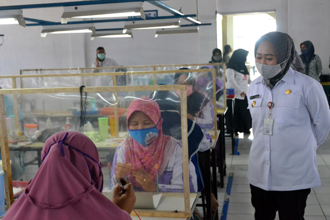 "Alhamdulillah seluruh pabrik sudah menerapkan protokol kesehatan. Mulai dari seluruh karyawan menggunakan masker, menyediakan fasilitas cuci tangan, jaga jarak dan pengukuran suhu," kata Bupati Tiwi.