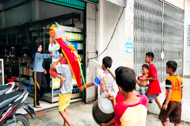Dengan bermodalkan alat-alat bekas tersebut, penampilan anak-anak ternyata mendapat sambutan hangat pemilik ruko. Sembari tertawa girang, pemilik ruko bahkan meminta mereka untuk masuk ke dalam, sembari memberikan sebuah amplop berwarna merah yang biasa disebut angpau.