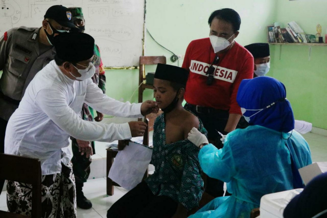 Jepara, gatra.net- Badan Intelijen Negara (BIN) Jawa Tengah suntik vaksin ribuan santri dan pelajar di Kabupaten Jepara. Vaksinasi tersebut digelar di Pondok Pesantren Hasyim Asyari Bangsri, Kamis (4/11).