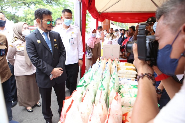 Jakarta, gatra.net - Menteri Pertanian Syahrul Yasin Limpo (Mentan SYL) bersama Gubernur Sulsel Andi Sudirman Sulaiman membuka Pasar Tani dan Gelar Pangan Berkualitas yang diselenggarakan Balai Besar Karantina Pertanian Kementerian Pertanian (Kementan) bersama Dinas Ketahanan Pangan Provinsi Sulsel, Bulog dan Stakeholder guna memperlancar distribusi 12 bahan pangan utama ke masyarakat. Kegiatan ini dilakukan secara serentak di tujuh zona yakni Kota Makassar, Gowa, Jeneponto, Barru, Soppeng, Luwu Utara dan Kabulaten Enrekang sehingga ketersediaan dan harga pangan di Sulsel hingga lebaran aman terkendali.