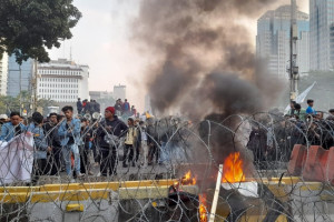 Namun, sekitar pukul 16.20 WIB, massa memaksa masuk dan mulai merobohkan pagar berduri sambil meneriakan kata 'revolusi' dan 'Hidup Mahasiswa.' Dari polisi sudah mulai berjaga-jaga sambil merapatkan barisannya di dekat pagar kawat berduri tersebut.