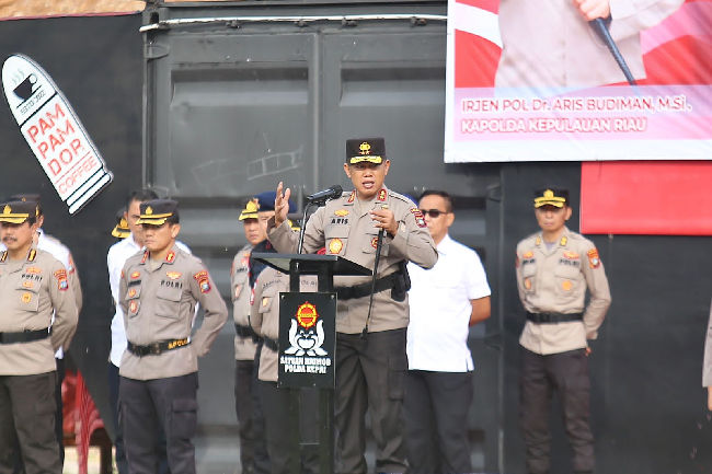 "Kepada seluruh personil Polda Kepri agar selalu berpedoman pada aturan yang ada dalam melaksanakan tugas, serta menghindari pelanggaran sekecil apapun yang dapat mencederai diri sendiri dan lnstitusi Polri. Personel harus bangga tidak melakukan pelanggaran, hargai dirimu, hargai institusimu, tegakkan kehormatanmu, jaga wibawamu, dan Polri kebanggaanku," tuturnya.
