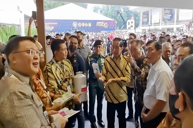 Jokowi mengapresiasi produk HerbaAsimor yang juga memiliki Tingkat Komponen Dalam Negeri (TKDN) tinggi saat berkunjung ke stan pameran dalam pembukaan Business Matching Peningkatan Penggunaan Produk Dalam Negeri (P3DN) di Istora Senayan, Kompleks Gelora Bung Karno (GBK), Jakarta, beberapa waktu lalu.
