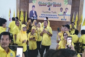 "Seperti yang diketahui Partai Golkar adalah partai tengah. Partai yang menjaga keseimbangan antara kegiatan pemerintahan, kegiatan kemasyarakatan, bersama dengan kegiatan keagamaan," katanya.