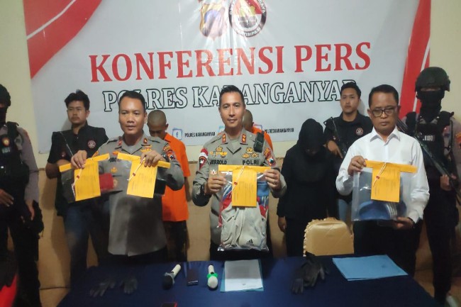 "Ada tiga pelaku. Dua diantaranya sudah tertangkap sedangkan satu lagi masih buron," kata Kapolres Karanganyar AKBP Jerrold Hendra Yosef Kumontoy dalam gelar barang bukti di Mapolres, Senin malam (8/5).