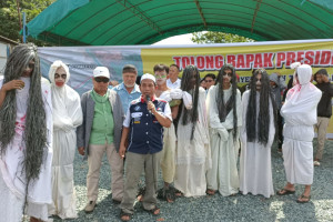 "Kami telah berjuang melalui pemerintah dan aparat penegak hukum di Kalsel. Tetapi perjuangan untuk mendapatkan keadilan hanya sia-sia, sehingga kami terpaksa minta tolong ke pocong dan genderowo untuk membantu kami bersatu mencari keadilan," ujarnya kepada wartawan.