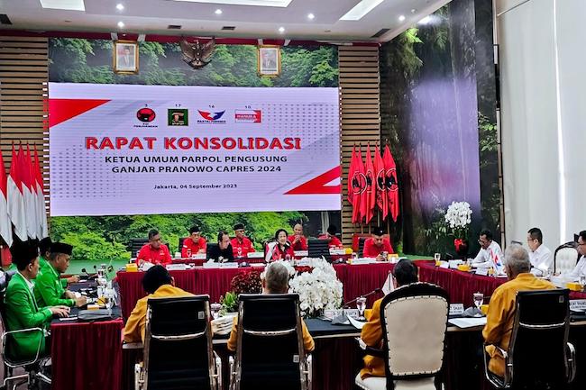 "Agenda pertemuan ini rapat konsolidasi partai politik yang mengusung Ganjar Pranowo sebagai capres di Pilpres 2024. Para ketua umum sibuk kegiatan masing-masing ke daerah jadi hari ini waktu yang cocok," kata Hasto.