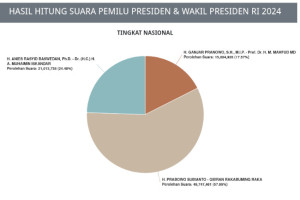Berdasarkan hasil hitung cepat KPU hingga 16 Februari 2024 pukul 14.30 dengan total data masuk mencapai 46,19%, pasangan Prabowo-Gibran memang unggul dengan perolehan 71,79%. Sementara pasangan Anies-Muhaimin hanya mendapat 19,33%, dan Ganjar-Mahfud hanya 8,88%.