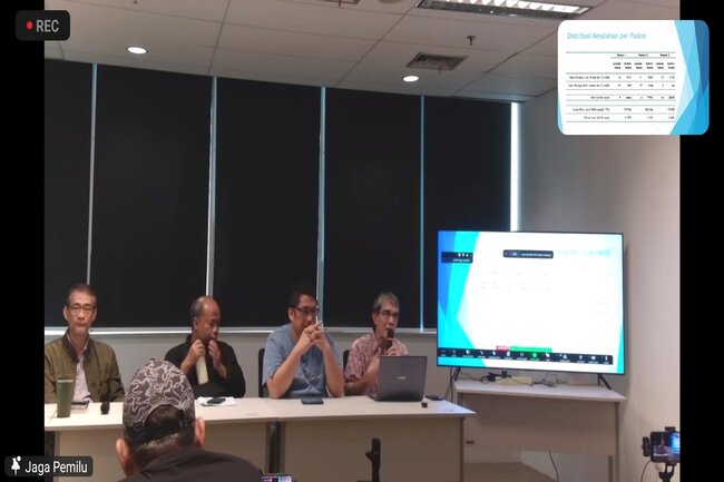 Jakarta, gatra.net - Perkumpulan Jaga Pemilu melakukan monitoring SIREKAP terkait dengan hasil suara pemilu 2024. Pemerhati Pemilu Bersih sekaligus mantan Komisioner KPU Hadar Nafis Gumay yang terlibat di Jaga Pemilu menemukan, ketiga pasangan calon mendapat penambahan suara dari hasil rekap yang dilakukan Jaga Pemilu.